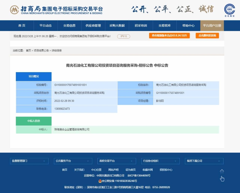 金年会金字招牌信誊石油化工有限公司投資項目咨詢服務采購中标公告